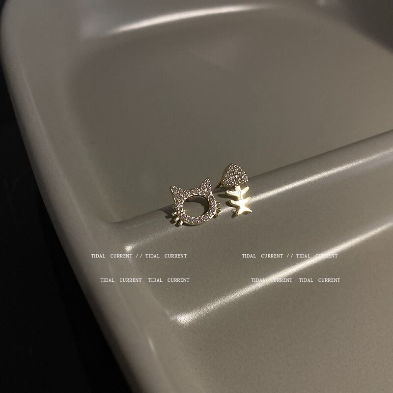 Sシルバーニードルイヤリングイヤリングコールドイヤリング対称魚の骨EHE