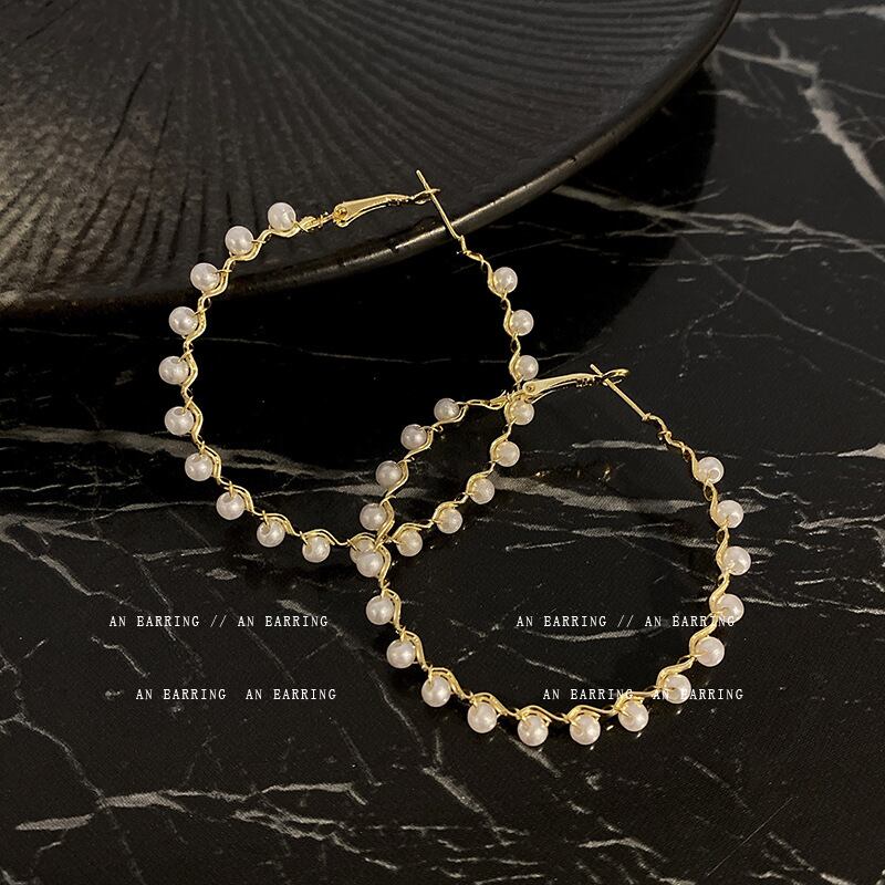 Sシルバーニードル誇張された大きなイヤリング女性のハイエンドセンスサークルパールイヤリングコールドイヤリングEHE