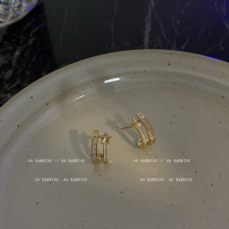 Sシルバーニードルメタルジルコンダブルイヤリングメス021新しいハイエンドイヤリングイヤリングEHE