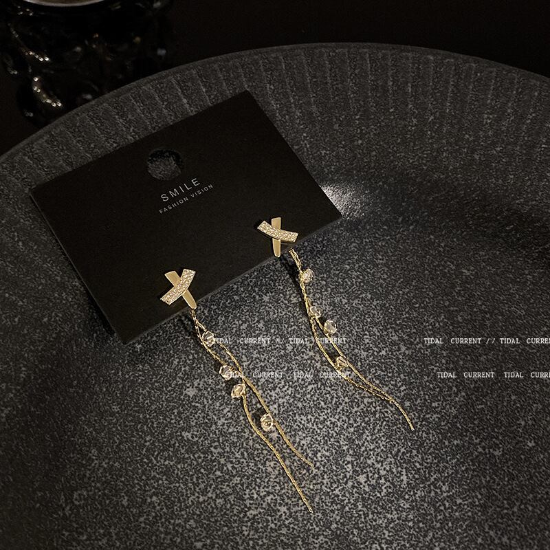 Sシルバーニードルロングタッセルイヤリングメス1または2ウェアイヤリングイヤリングイヤリングEHEEHE