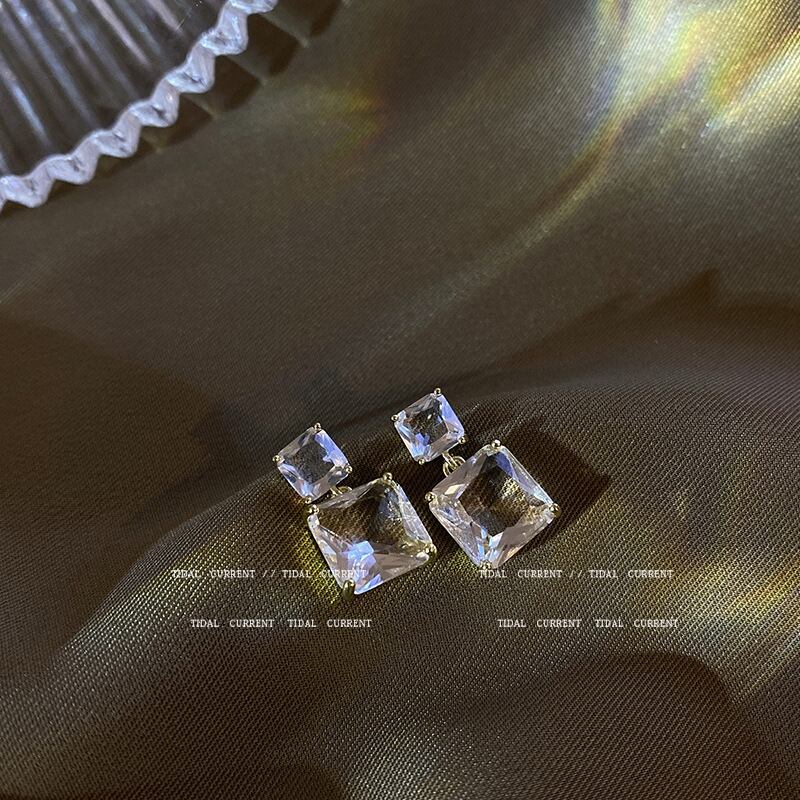 Sシルバーニードルコールドスクエアクリスタルスタッドピアス新しいイヤリングメスEHE