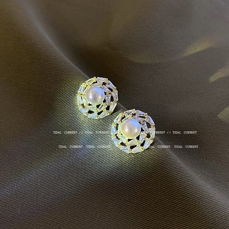 Sシルバーニードルクリスタルイヤリング女性スーパーフェアリーハイエンドパールイヤリングイヤリングEHE