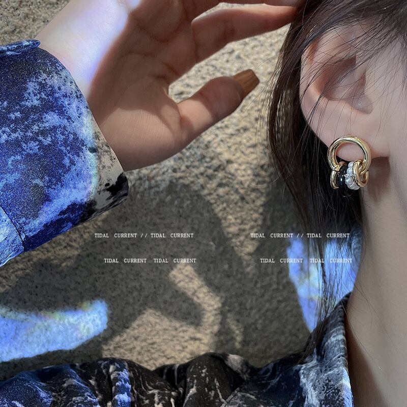 幾何学的な真珠の円のイヤリング2022新しい女性のイヤリングS銀の針のイヤリングEHE