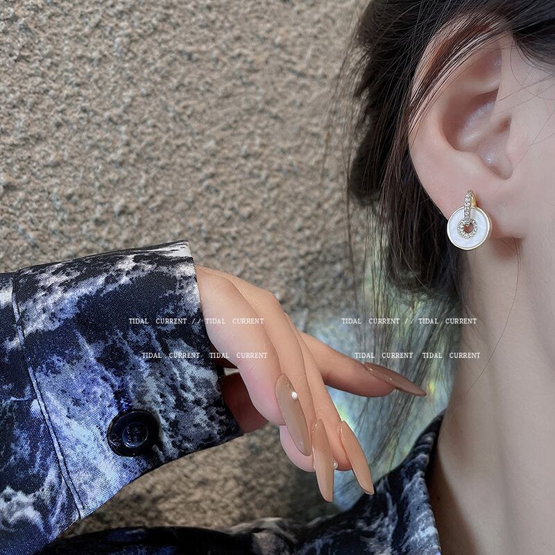 Sシルバーニードルサークルスタッドピアス女性用ライトラグジュアリーアクリルピアス賢いイヤリングEHE