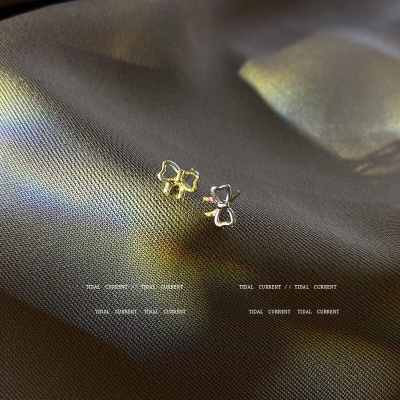 Sシルバーニードルフラワーボウスタッドピアス女性用スマートイヤリングミニイヤージュエリーEHE