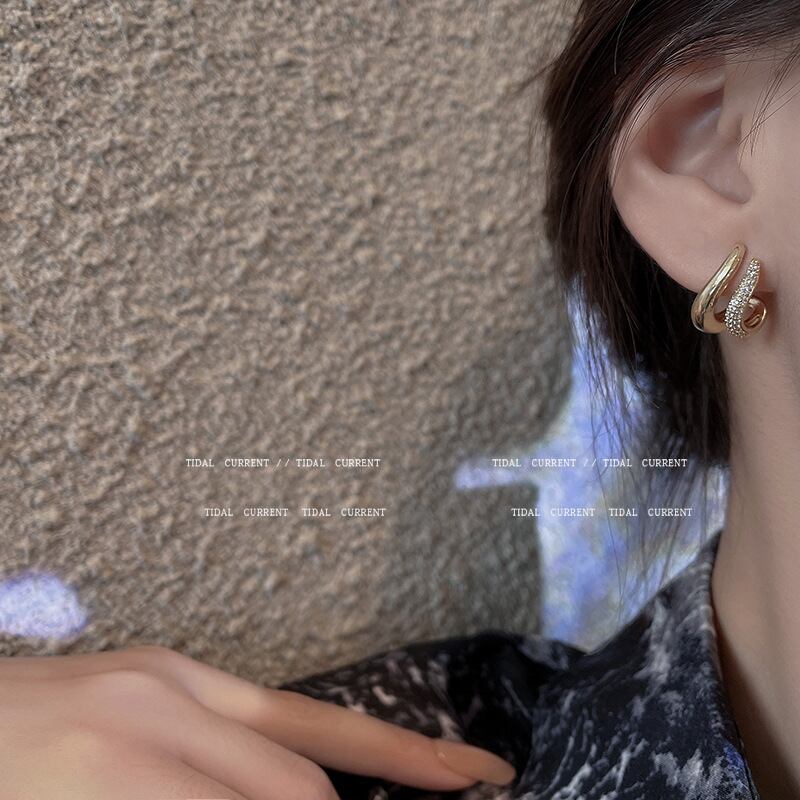 SシルバーニードルダブルロージルコンイヤリングメスニューコールドイヤリングメタルダブルイヤリングEHE