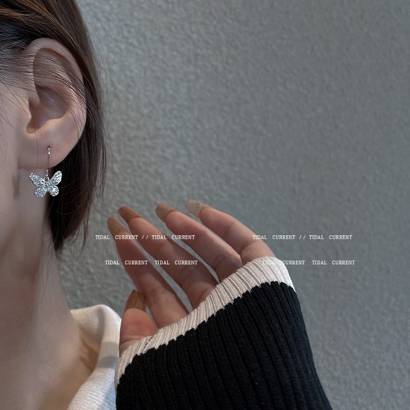 SシルバーニードルスーパーフェアリーバタフライイヤリングメスイヤリングハイエンドイヤリングEHEEHE