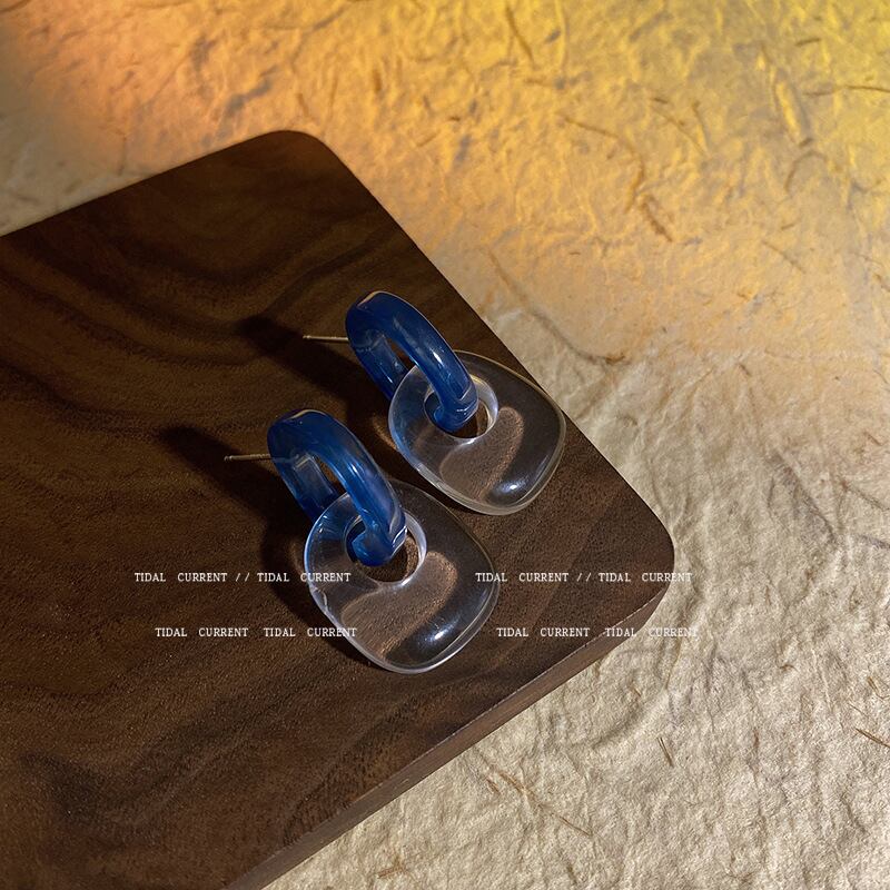 小さな青いアセテートアクリルシルバーニードル透明イヤリング女性の日幾何学的イヤリングイヤリングライブEHE