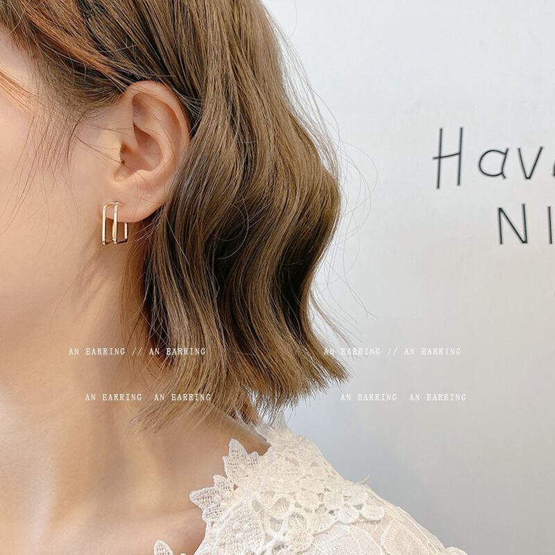 Sシルバーニードルイヤリング女性の幾何学的な正方形のダブルイヤリングイヤリングライトラグジュアリーイヤリングEHEEHE