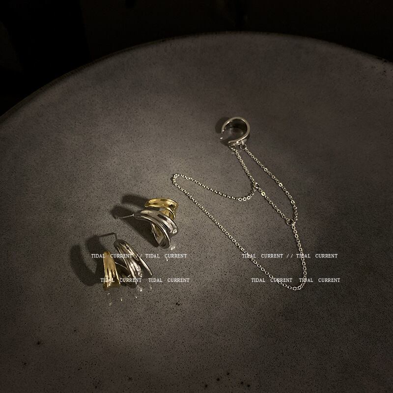 Sシルバーターゲットイヤリングメス一体型イヤークリップチェーンイヤリングコールドEHE