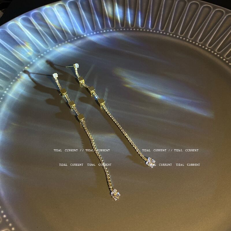 Sシルバーニードルライトラグジュアリー幾何学イヤリング女性イヤリングロングタッセルEHE