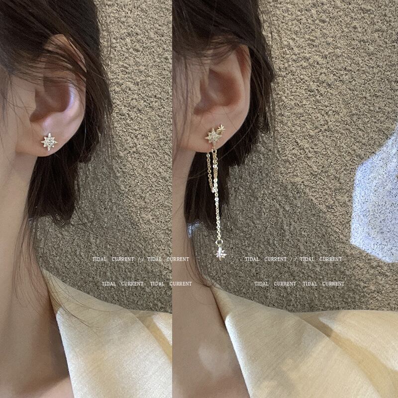 Sシルバースタッドピアス女性ロングタッセルスターピアスイヤリングイヤリングイヤージュエリーEHEEHE